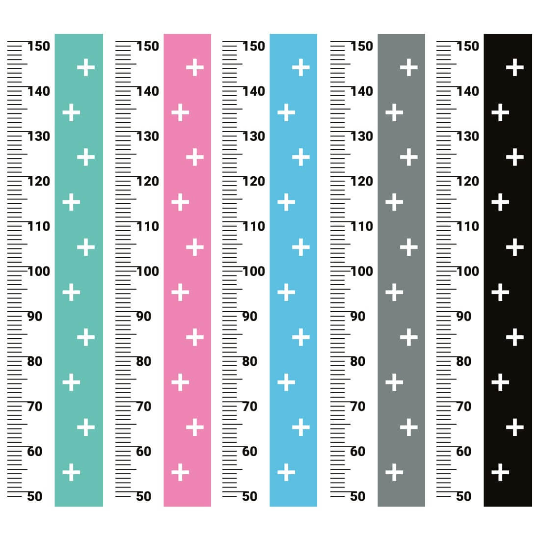 On the measure you can note the height from 50 to 150 cm. Sticker dimension: 21x105 cm.