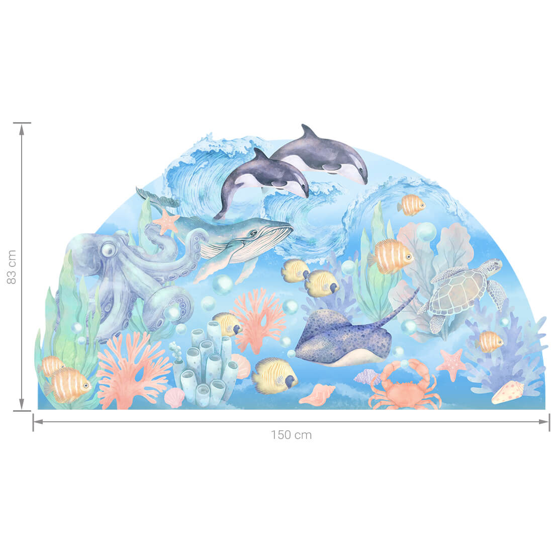The ocean sticker, thanks to its large surface, is perfect to stick behind the bed or in the children's corner. It is a beautiful decoration at the same time protecting the wall from dirt or damage.