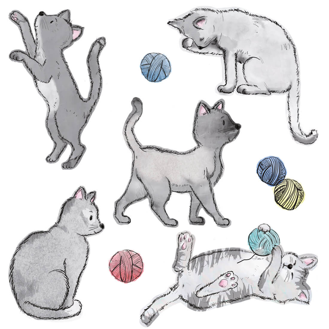 This set includes: 5 cats, 4 colored swaggers. The exact dimensions are given in the last photo.