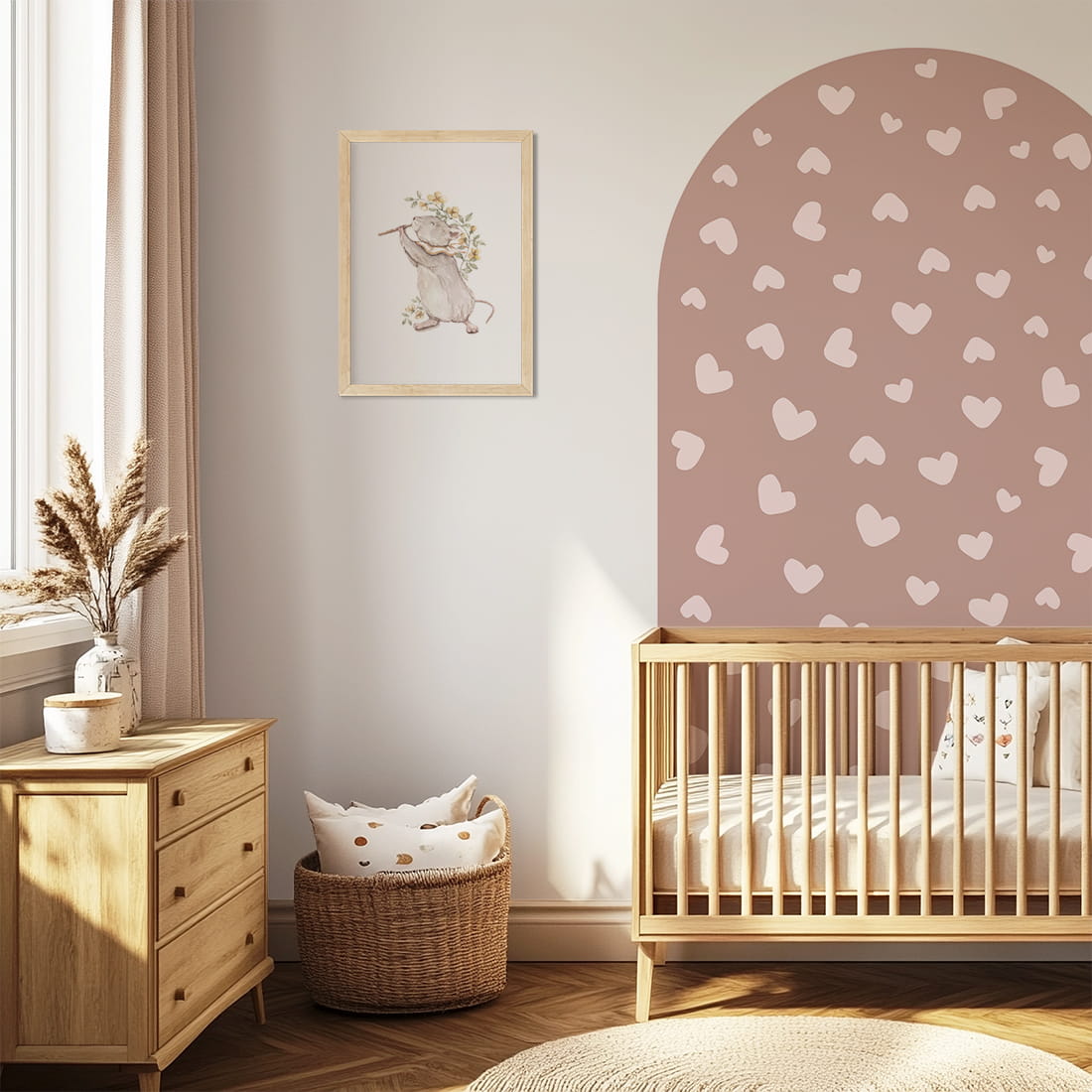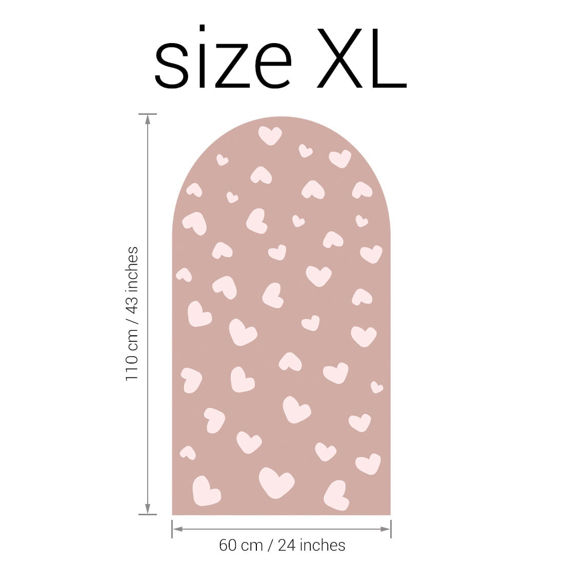 Arch-shaped wall sticker with Hearts - wall sticker features a delicate, muted pink with a touch of elegance – perfectly suited for children’s interiors that blend classic charm with modern elements and boho style.