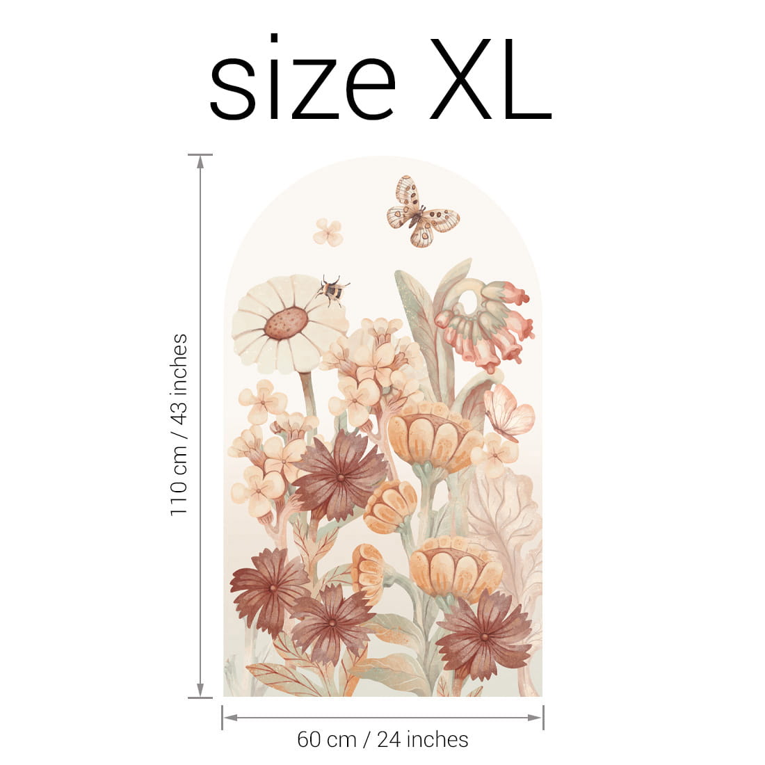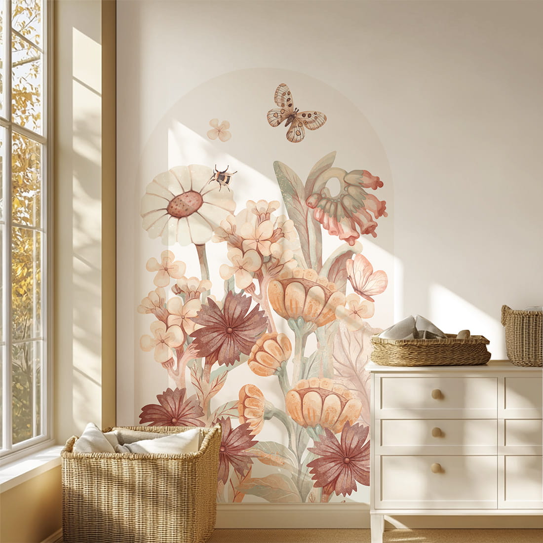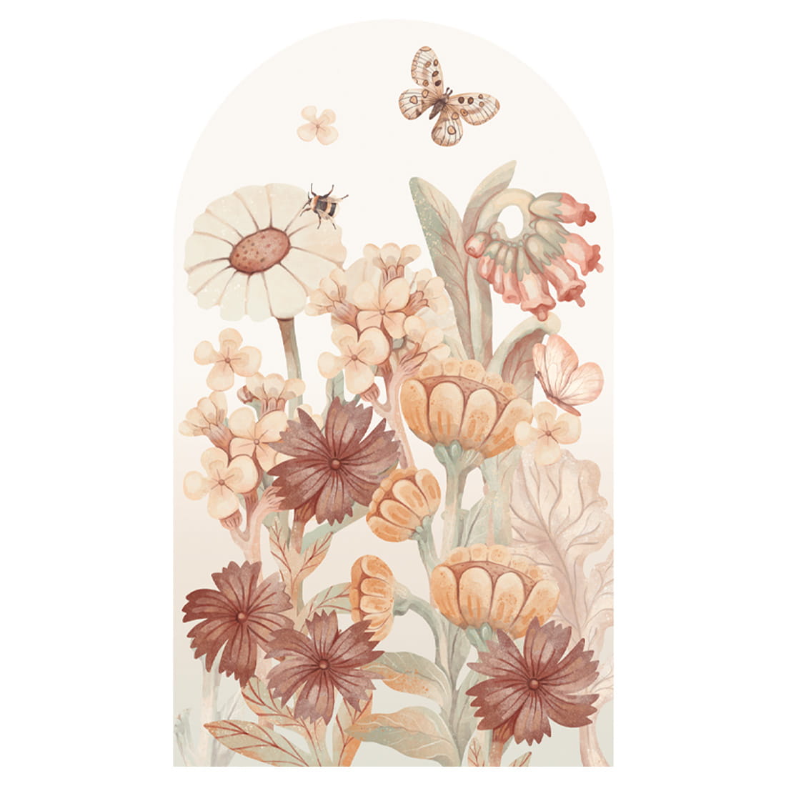 Arch-shaped wall sticker with flowers boho - this delicate floral design was created with the youngest in mind – full of soft colors, organic shapes, and harmonious compositions. The floral arch is a beautiful decorative accent that brings a sense of calm, a connection to nature, and the carefree spirit of childhood into the space.