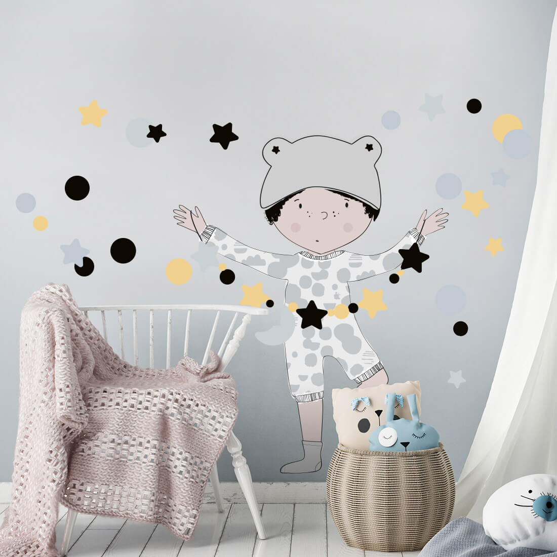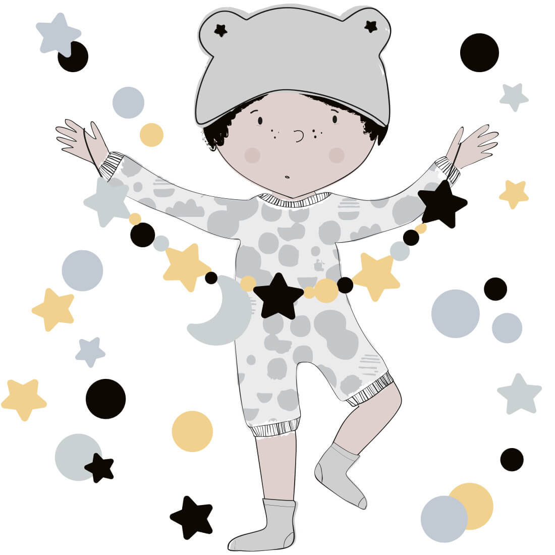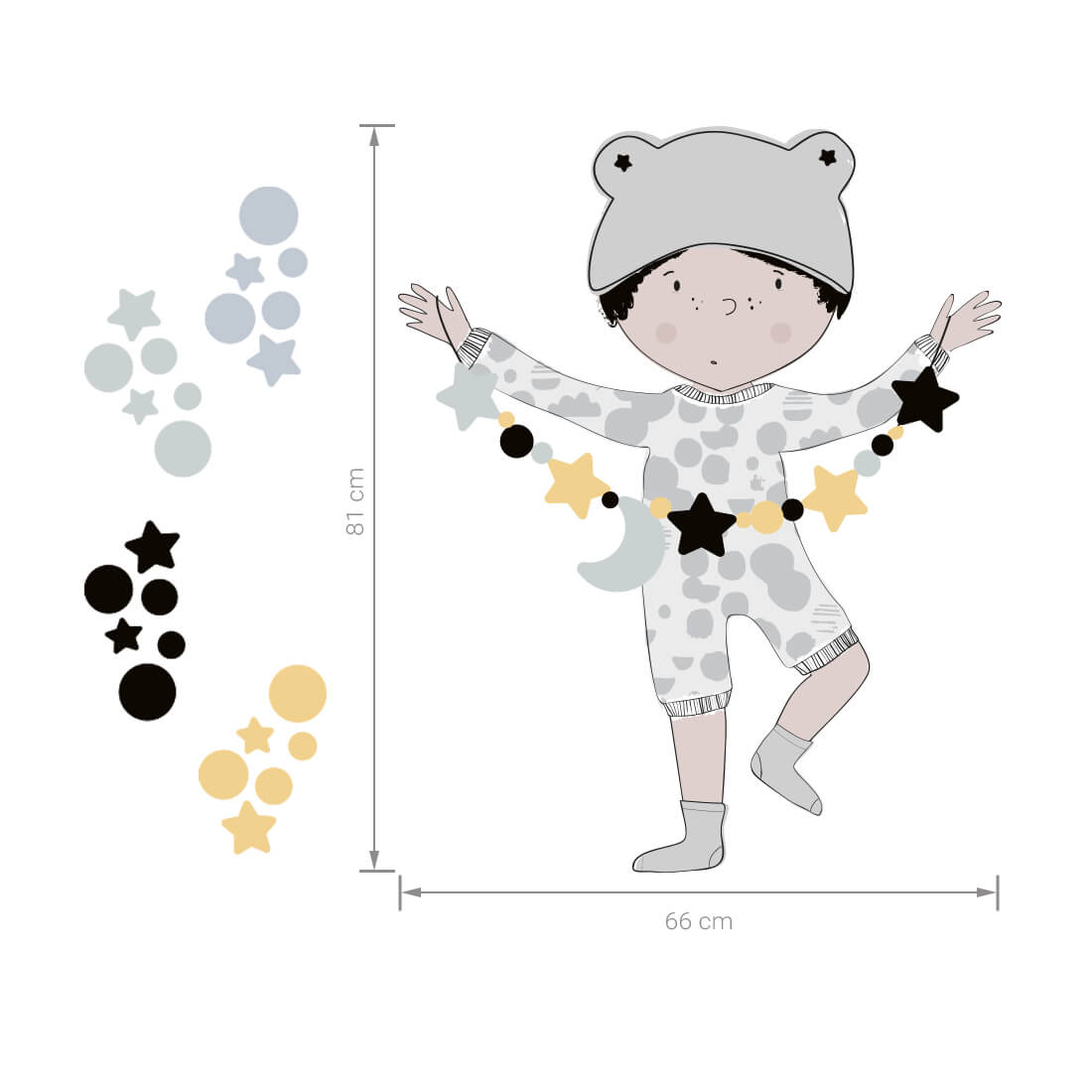 This set includes: little boy, set of stars and dots. The exact dimensions are given in the last photo.