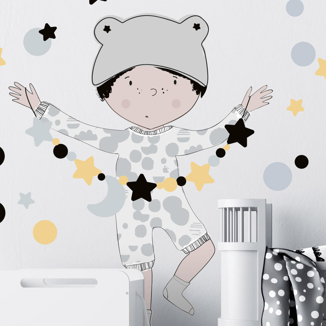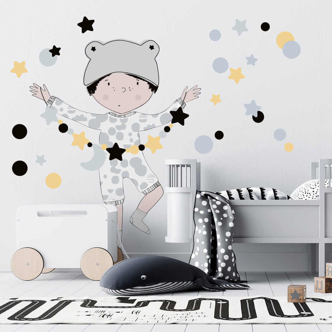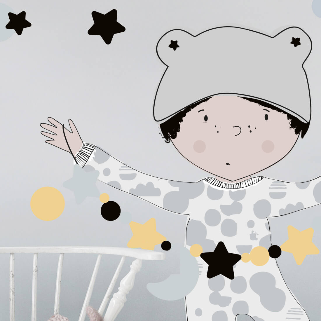 This set includes: little boy, set of stars and dots. The exact dimensions are given in the last photo.
