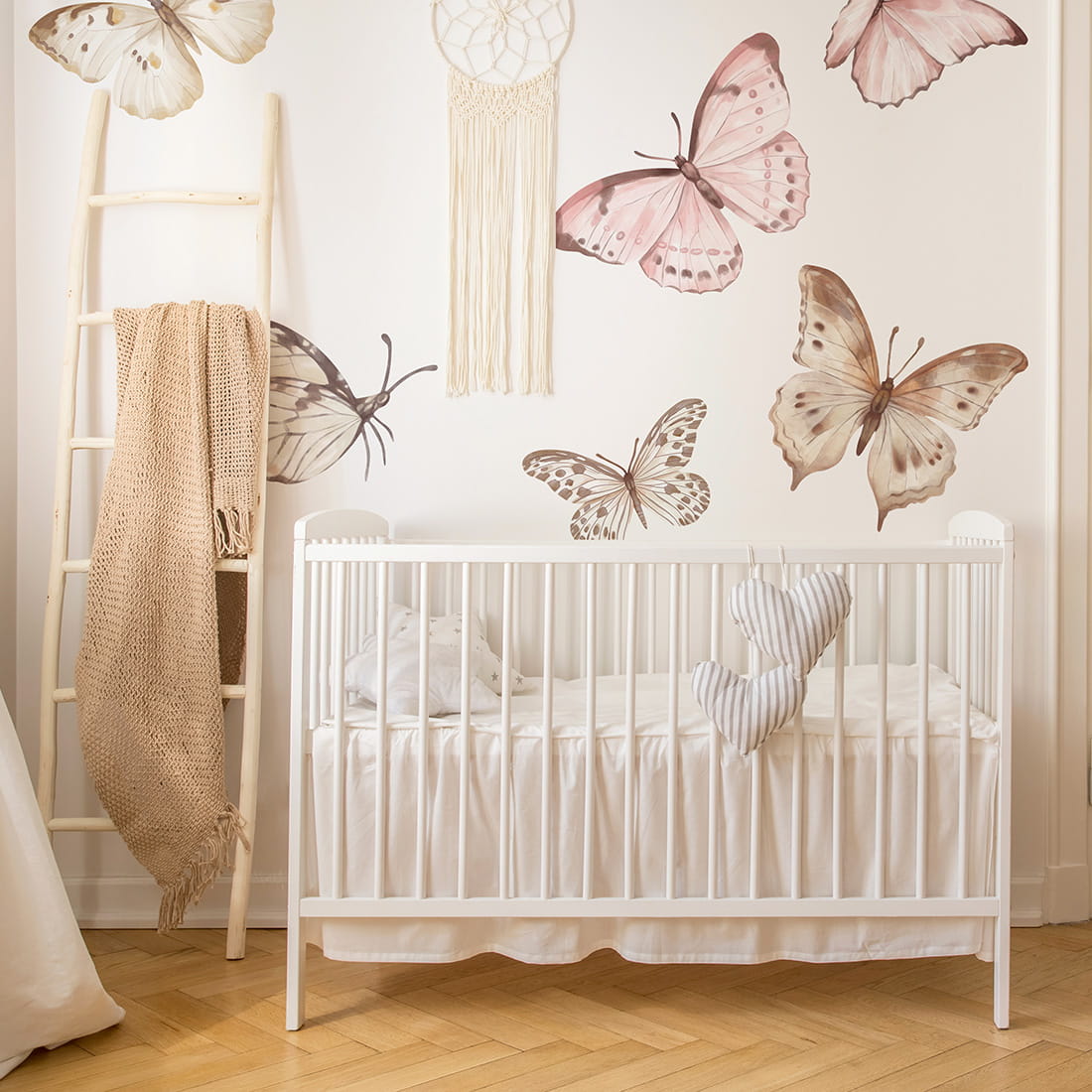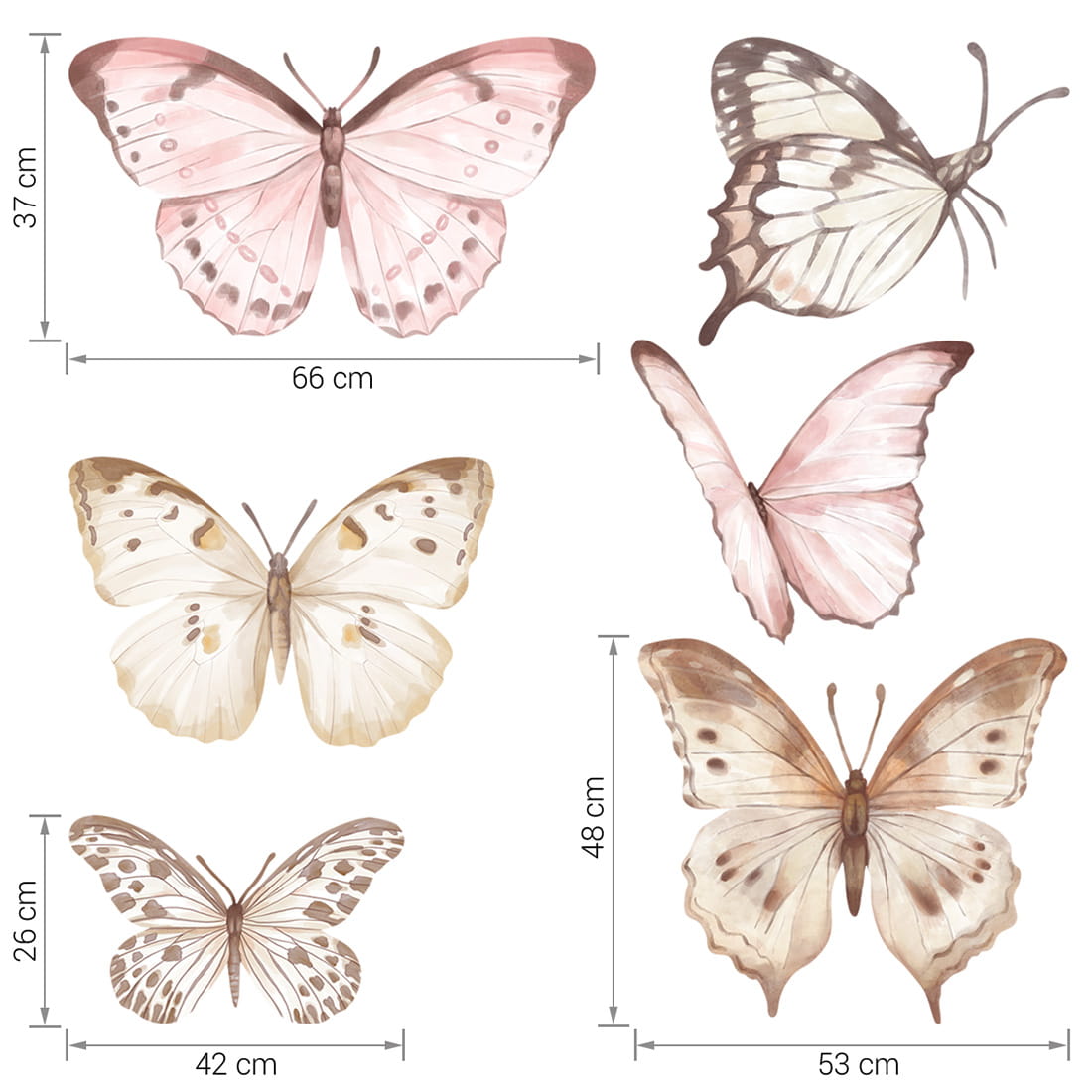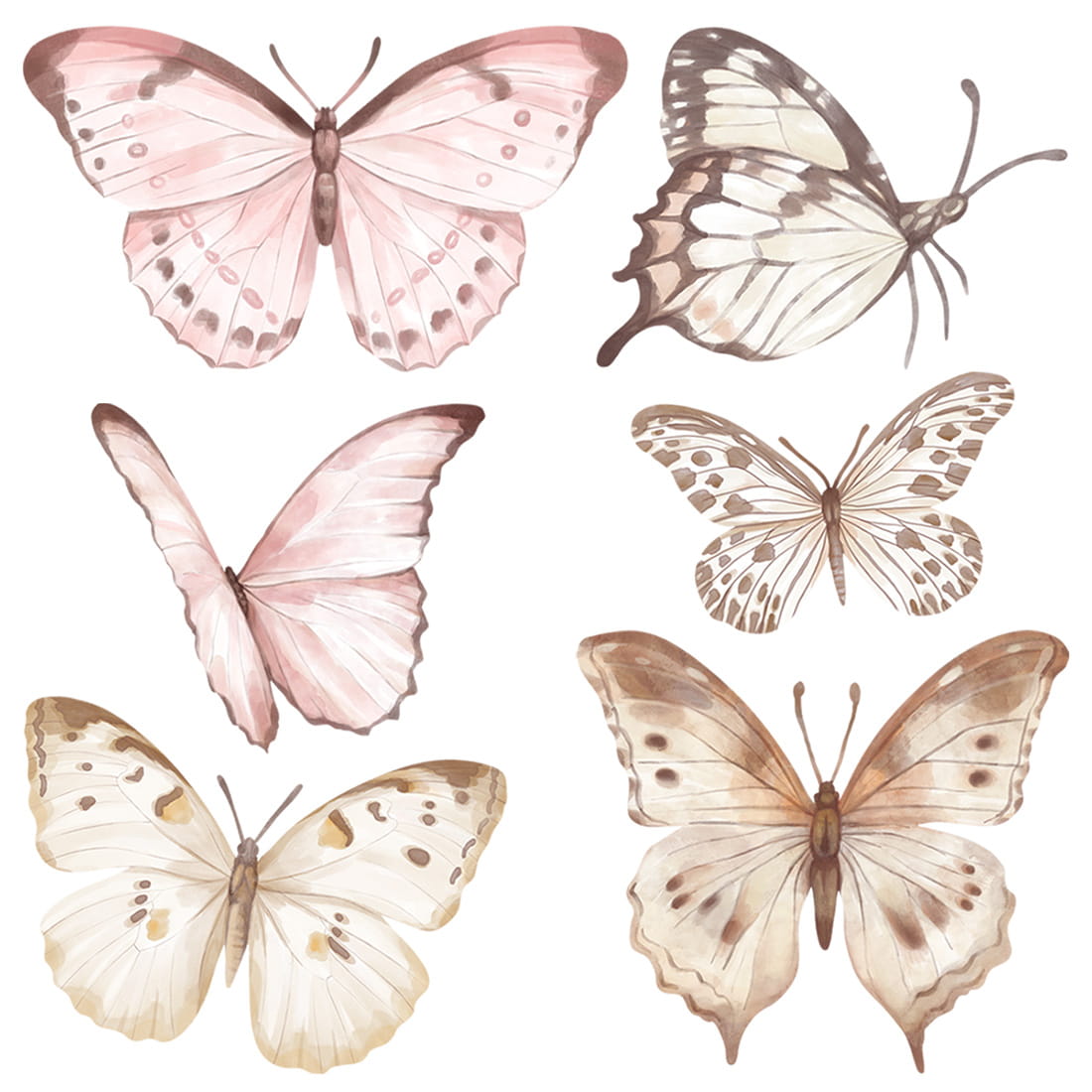 Butterflies Wall Sticker delicate butterfly wall stickers in shades of pink and beige are hand-painted illustrations that will bring lightness and subtle charm to any interior.