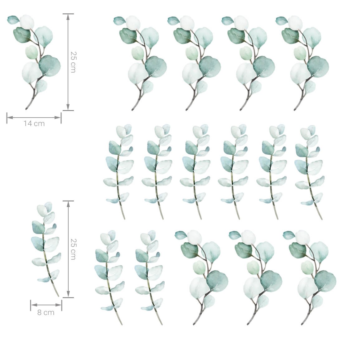 This set includes: 17 branch in 2 types. The exact dimensions are given in the last photo.