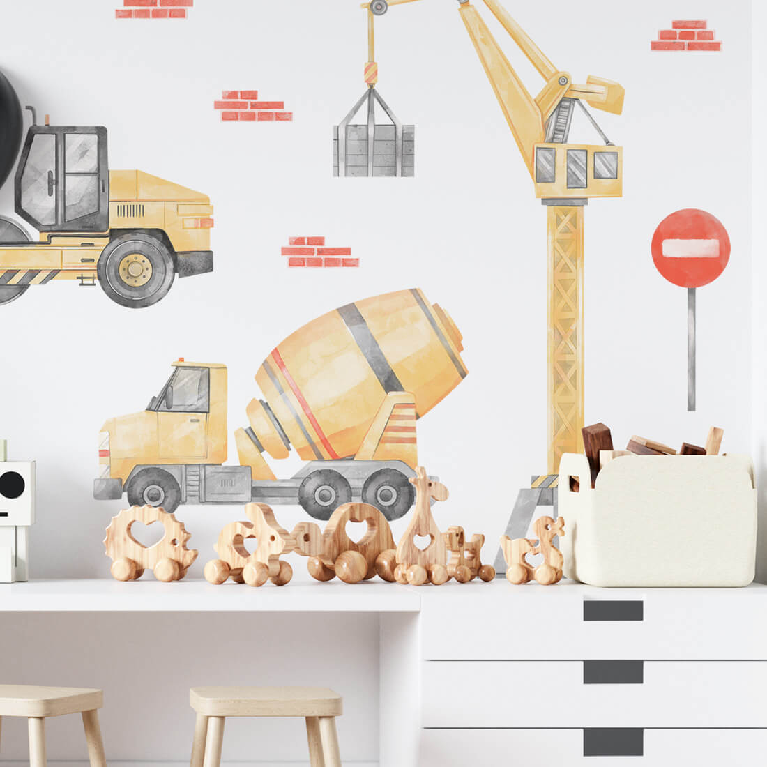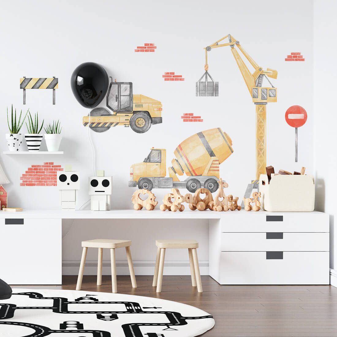 The construction site wall sticker collection was created for true enthusiasts of construction vehicles. Wall stickers from this series are realistic vehicles straight from the construction site. The entire series has been designed to perfectly harmonize with each other and create a coherent composition.